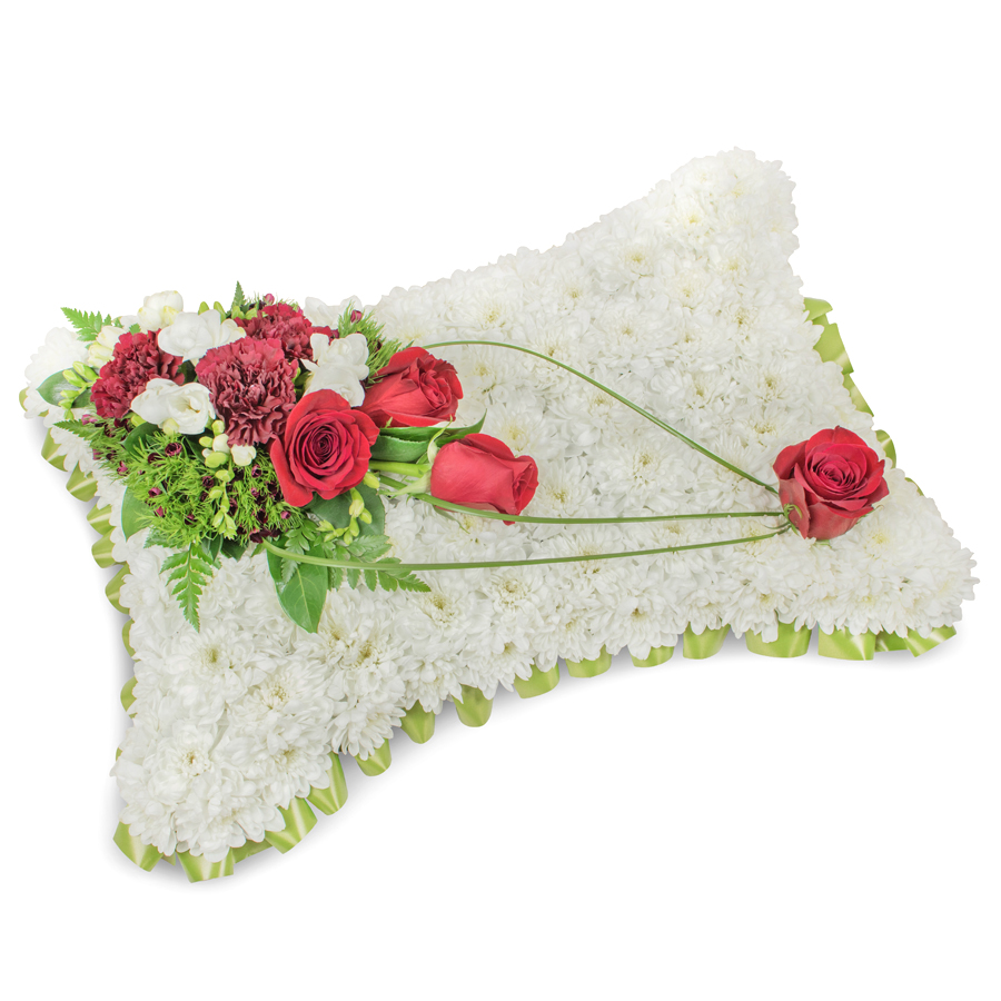 Offer your sincere condolences with our Serene Condolence Flower Arrangement, designed to bring peace and comfort during challenging times. This bouquet features a harmonious blend of white chrysanthemums, delicate red roses, soft white freesias, and deep dark red carnations, beautifully balanced with dianthus and bear grass. Each flower is carefully selected for its quality and freshness, creating an arrangement that speaks volumes.